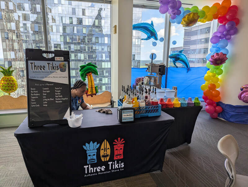 We are an easily transportable 16' trailer, food truck, or 10' x 10' food stand. Three Tikis has a drive-up trailer as well as a tent option, both run by our generator. We can operate indoors or outdoors - setup is event-specific to best fit your needs!